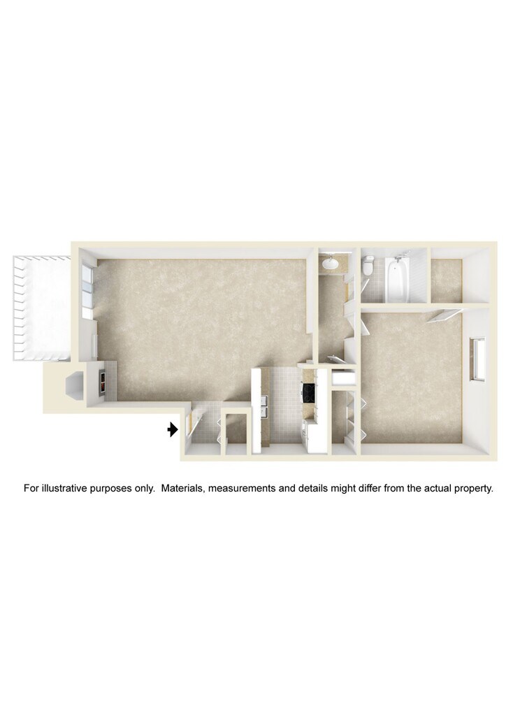 MPA-1x1(730) - Image 8 Floor plans are artist's rendering. All dimensions are approximate. Actual product and specifications may vary in dimension or detail. Not all features are available in every rental home. Please see a representative for details.