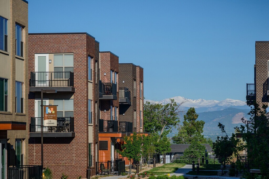 Monaco Row blends sophistication and convenience with modern row-house-style apartments featuring attached garages and stunning Rocky Mountain views. Open-concept interiors are filled with natural light from oversized windows, showcasing sleek finishes like stainless steel appliances, black granite countertops, and designer wood cabinetry. Each spacious floor plan includes large walk-in closets, in-home washers and dryers, and energy-efficient appliances. Residents enjoy a vibrant social scene with a TV screening area, bar, coworking space, and a well-equipped fitness center. Relax by the resort-style pool, spa, or outdoor fire pit. Conveniently located near the Light Rail and major freeways, Monaco Row offers quick access to Denvers corporate and tech centers, making it a top choice for the Denver Tech Center lifestyle. Experience city living at its finest! License #2023-BFN-0008544.
