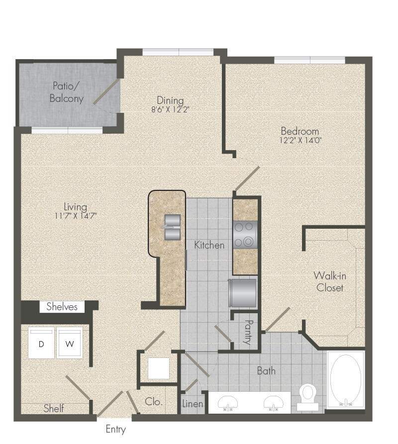 Apartment Model: A1From $1,2731 Bedroom, 1 Bath, 682-840 sq ftAvailable NowFloor plans are artist's rendering. All dimensions are approximate. Actual product and specifications may vary in dimension or detail. Not all features are available in every rental home. Prices and availability are subject to change. Base rent is based on monthly frequency. Additional fees may apply, such as but not limited to package delivery, trash, water, amenities, etc. Deposits vary. Please see a representative for details.