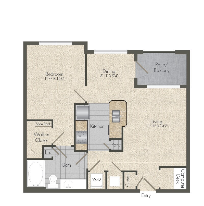 1 Bed, 1 Bath, 682-840 sq ftAvailable NowCheapest 1 BedroomThis is the cheapest 1 Bedroom at this PropertyModel Gallery