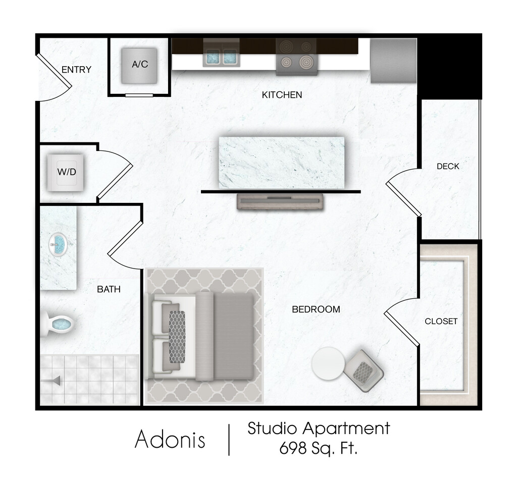 Studio, 1 Bath, 698 sq ftAvailable NowAvailability Details