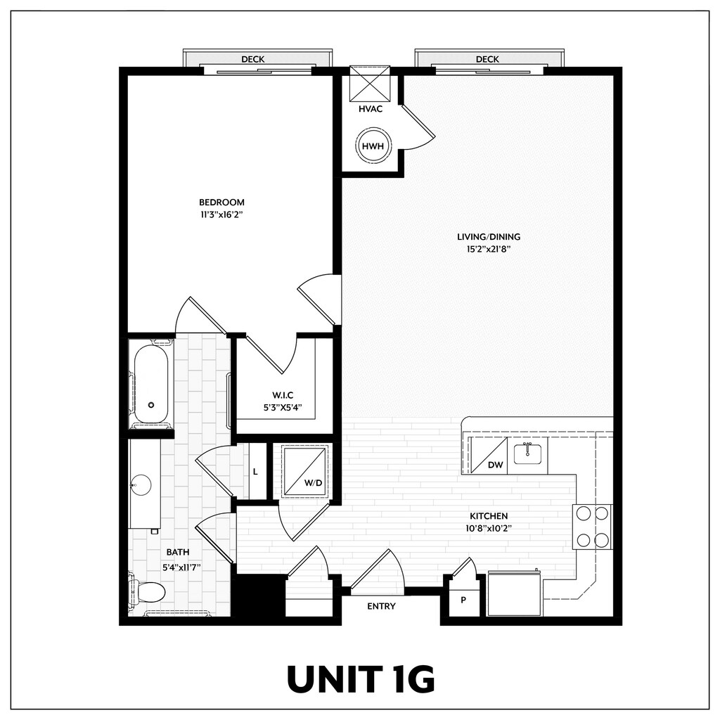 1 Bed/1 Bath-1D - Floorplan 1 1 Bed/1 Bath-1E