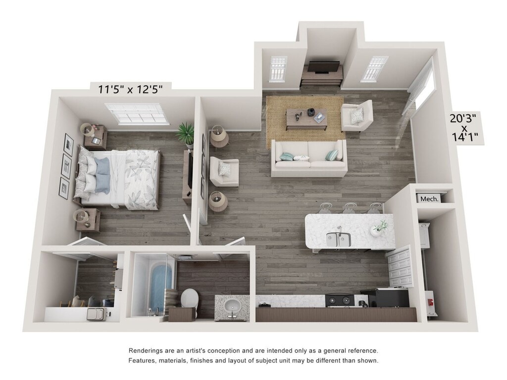 1 Bed, 1 Bath, 704 sq ftAvailable January 16, 2026Model Gallery