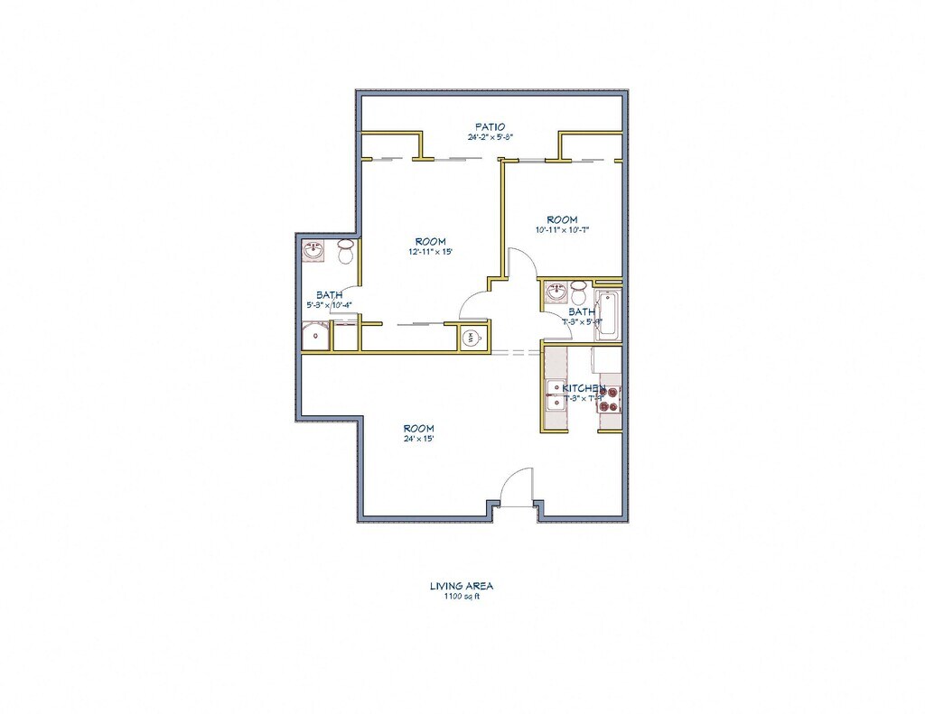 2 Bedroom 2 Bath - Floorplan 1