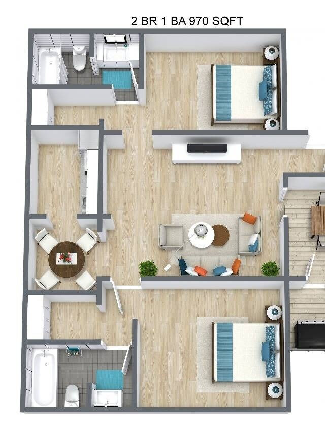 2 Beds, 1 Bath, 850 sq ftAvailable NowCheapest 2 BedroomThis is the cheapest 2 Bedroom at this PropertyModel Gallery