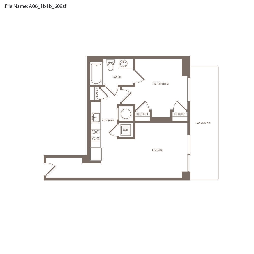 Apartment Model: A3$1,676Studio, 1 Bath, 609 sq ftUnavailableA3 - Floorplan 1 1 Bedroom