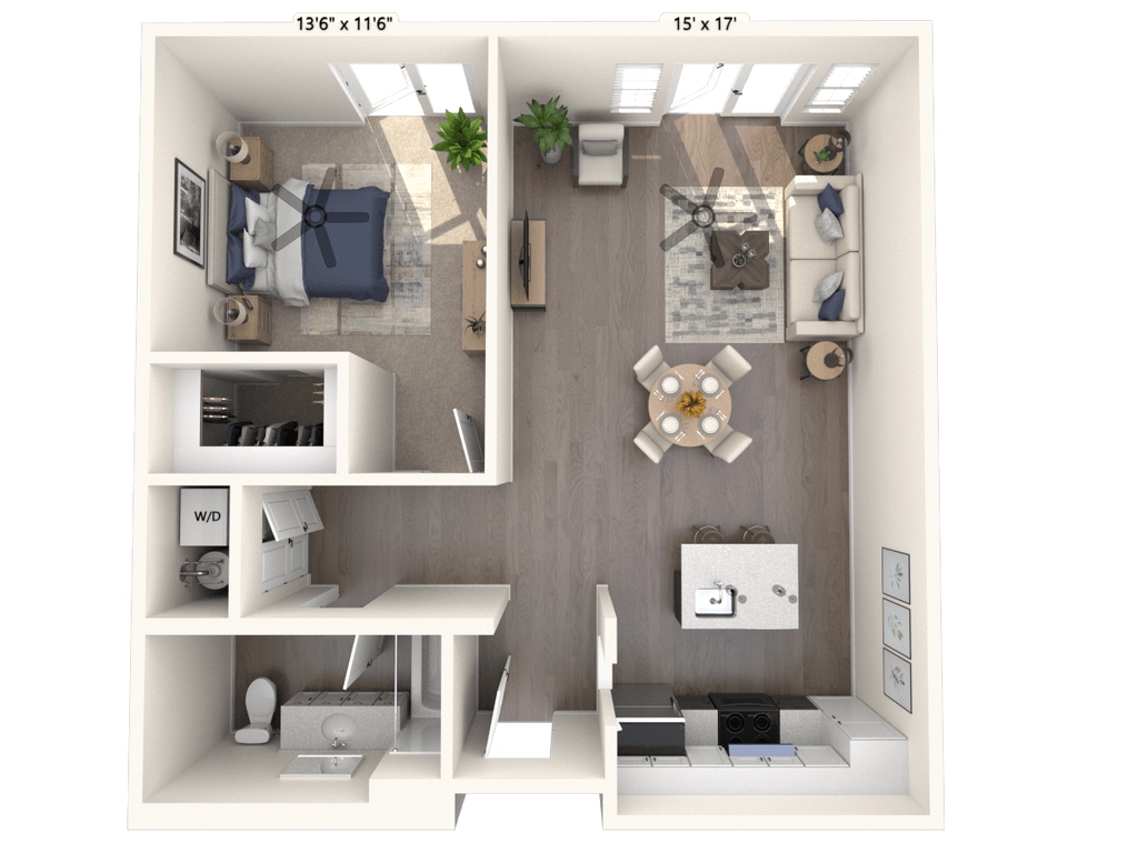 1 Bed, 1 Bath, 708 sq ftAvailable NowModel Gallery