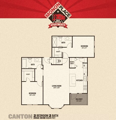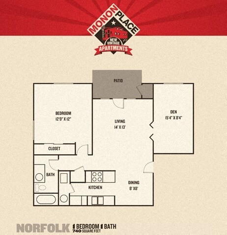 Apartment Model: Monon Place I - 1 BedroomFrom $1,2821 Bedroom, 1 Bath, 675-740 sq ftAvailable Now![]()
