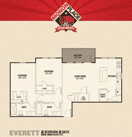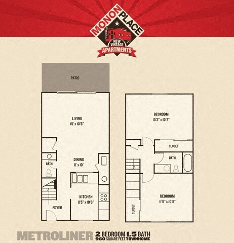 2 Beds, 1.5 Baths, 960-1088 sq ftAvailable NowLargest 2 BedroomThis is the largest 2 Bedroom at this PropertyModel Gallery