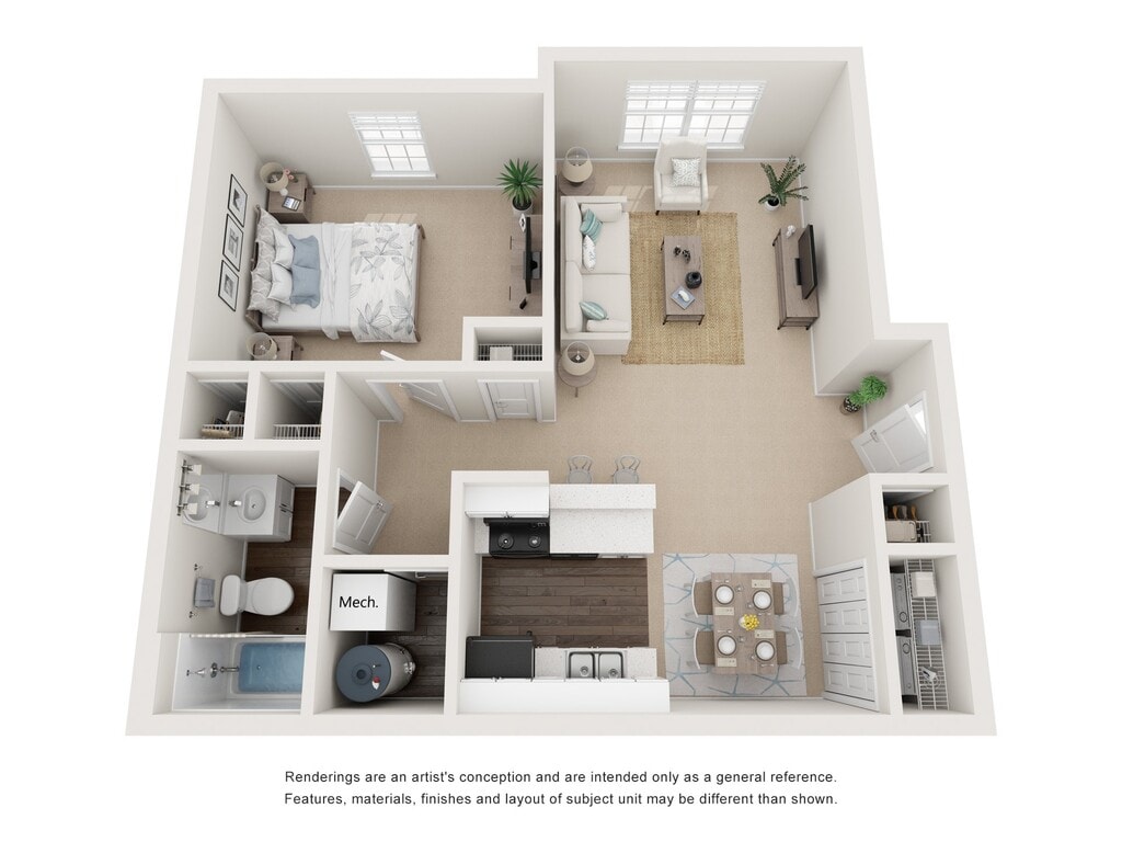 1 Bed, 1 Bath, 678 sq ftModel Gallery