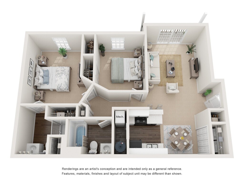 2 Beds, 2 Baths, 933 sq ftAvailable NowModel Gallery