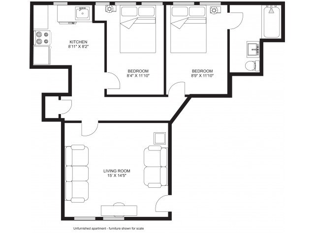 1 Bedroom, 1 Bathroom - Floorplan 1 2 Bedrooms