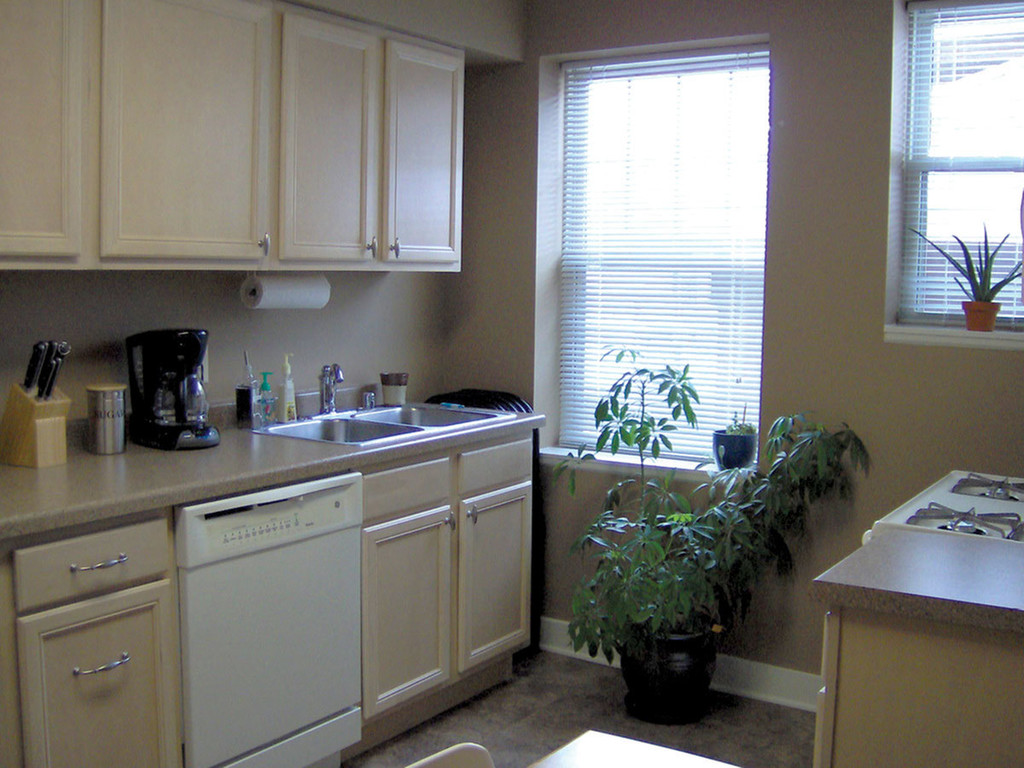 Monroe Manor Apartments offers 10 up-to-date apartments, with like new interiors, in a great neighborhood on popular Monroe Street. The kitchens have newer appliances, including dishwashers. There are beautiful wood floors in most of the apartments, stylish accents, and white painted trim and cream walls. Heat is included, and there is an on site laundry room. The top floor of the building is a four bedroom penthouse apartments that also has skylights, four built in desk units, a kitchen island, and a beautiful view.