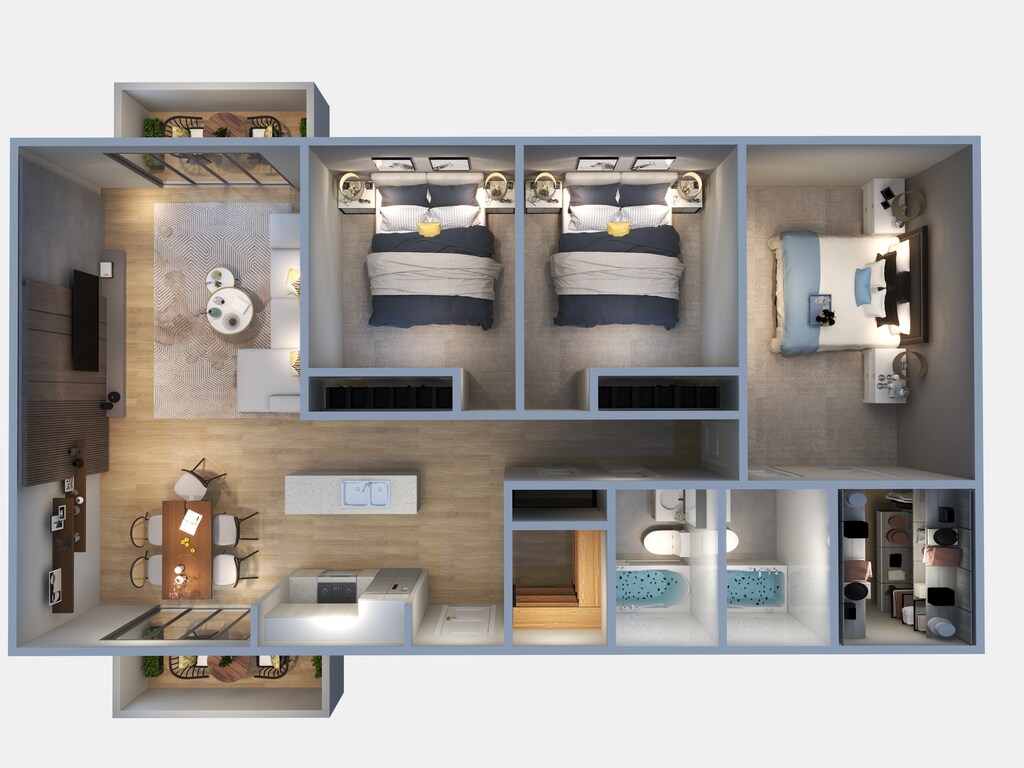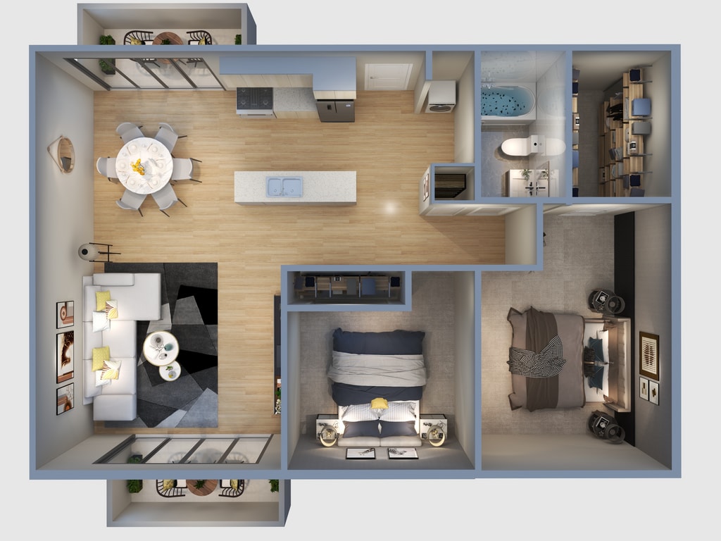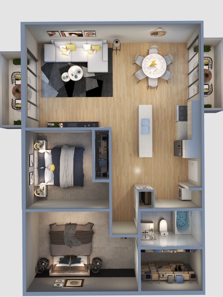 2 Beds, 2 Baths, 960 sq ftModel Gallery