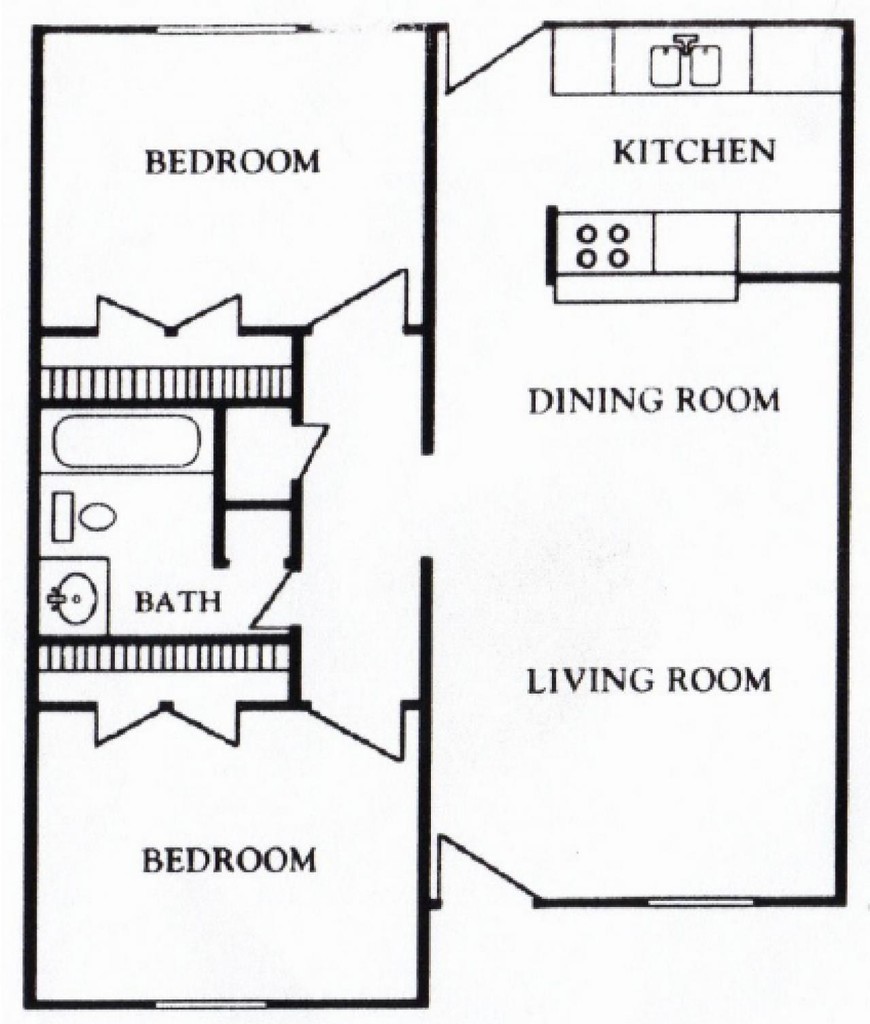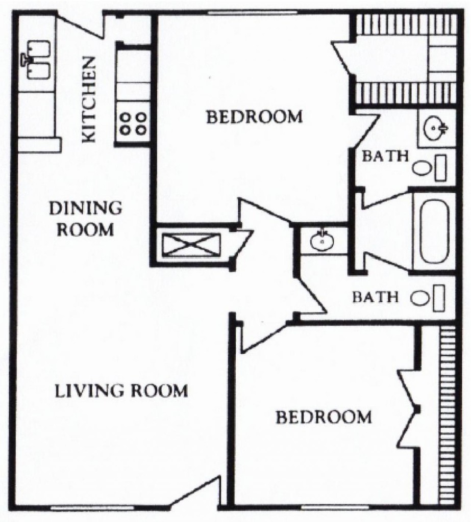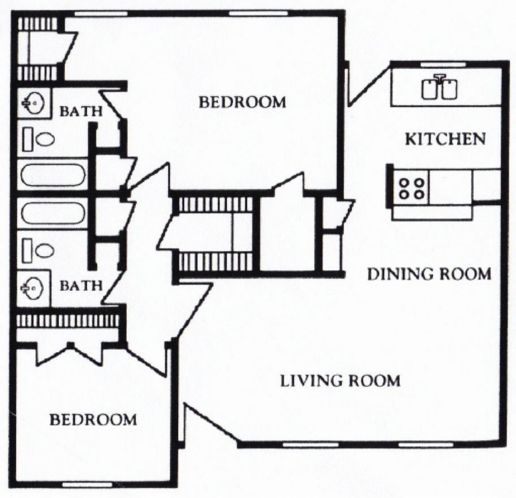 Apartment Model: Floor Plan D2 Bedroom, 1 Bath, 860 sq ftUnavailable![]()