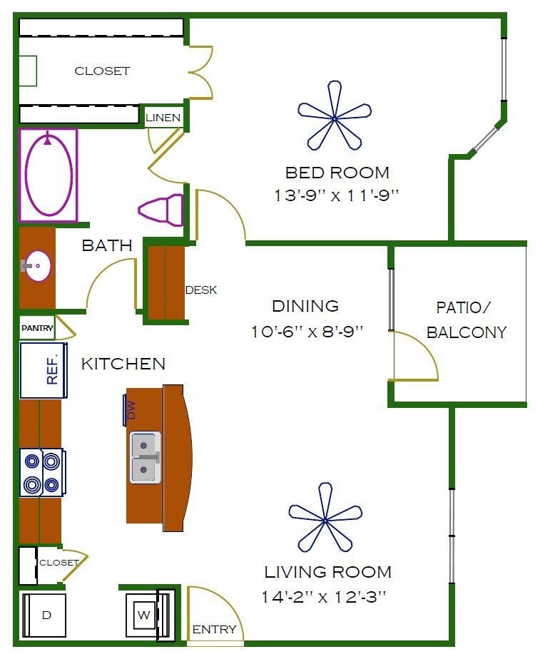 Apartment Model: The Stanley$1,4091 Bedroom, 1 Bath, 947 sq ftAvailable NowFloor plans are artist's rendering. All dimensions are approximate. Actual product and specifications may vary in dimension or detail. Not all features are available in every rental home. Prices and availability are subject to change. Base rent is based on monthly frequency. Additional fees may apply, such as but not limited to package delivery, trash, water, amenities, etc. Deposits vary. Please see a representative for details.