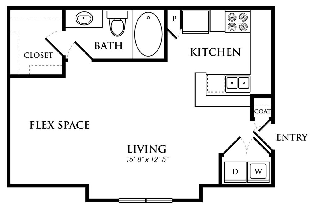 Studio, 1 Bath, 516 sq ftAvailable NowModel Gallery