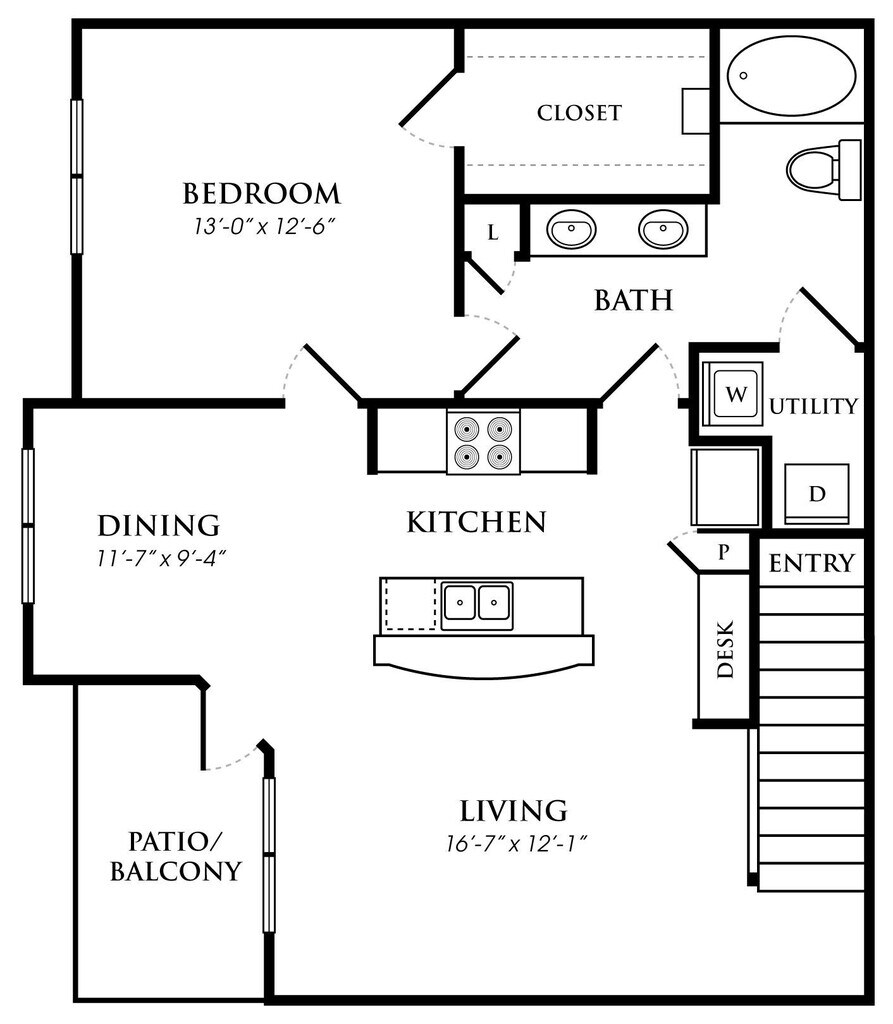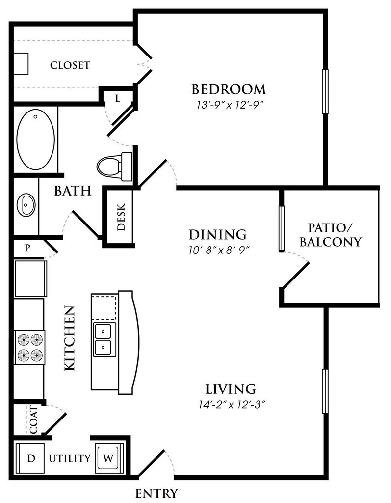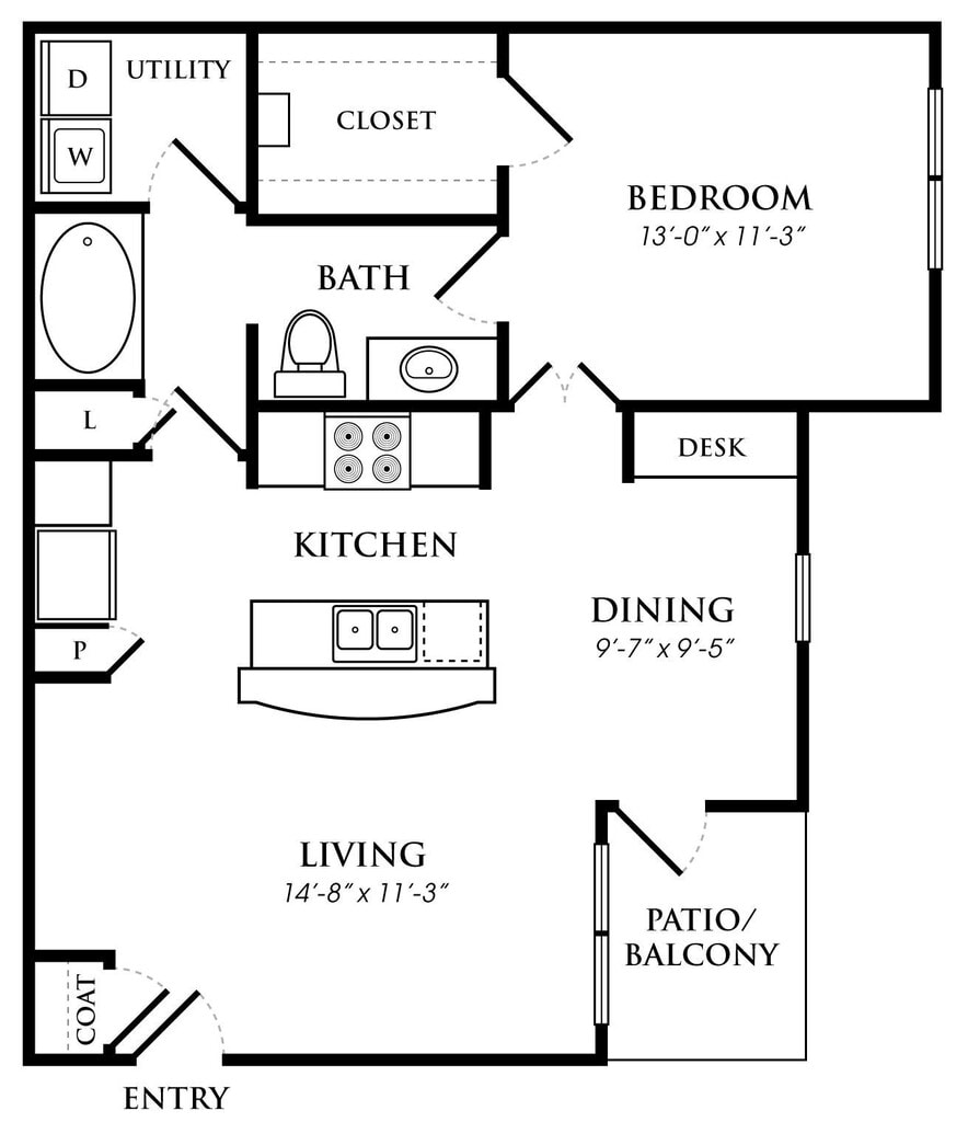 1 Bed, 1 Bath, 947 sq ftAvailable NowLargest 1 BedroomThis is the largest 1 Bedroom at this PropertyModel Gallery