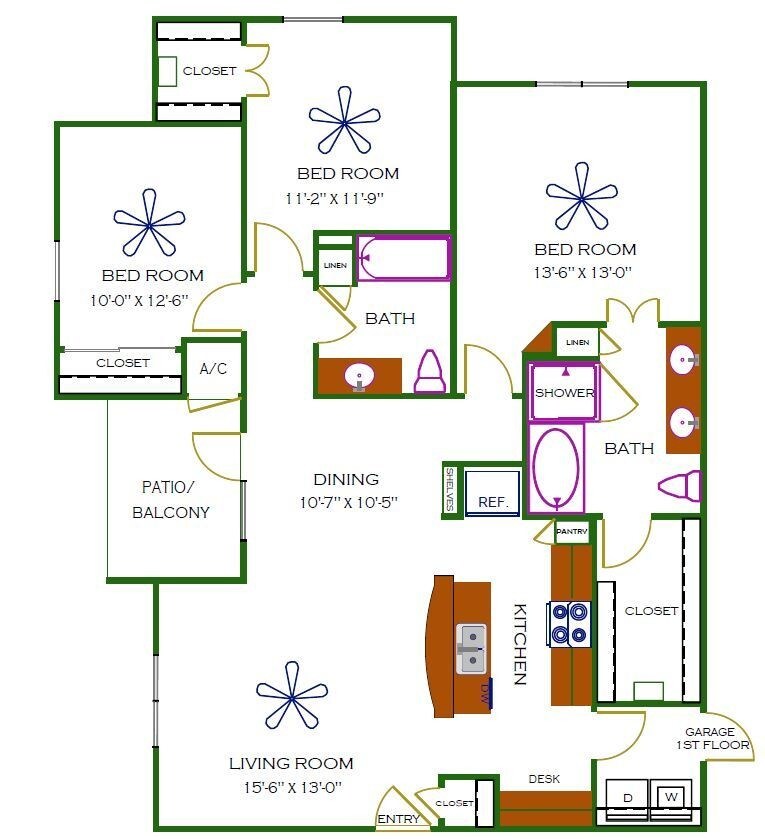 The Stanley - Floorplan 1 Floor plans are artist's rendering. All dimensions are approximate. Actual product and specifications may vary in dimension or detail. Not all features are available in every rental home. Prices and availability are subject to change. Base rent is based on monthly frequency. Additional fees may apply, such as but not limited to package delivery, trash, water, amenities, etc. Deposits vary. Please see a representative for details.