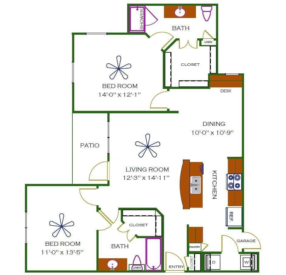 The Stanley - Floorplan 2 Floor plans are artist's rendering. All dimensions are approximate. Actual product and specifications may vary in dimension or detail. Not all features are available in every rental home. Prices and availability are subject to change. Base rent is based on monthly frequency. Additional fees may apply, such as but not limited to package delivery, trash, water, amenities, etc. Deposits vary. Please see a representative for details.