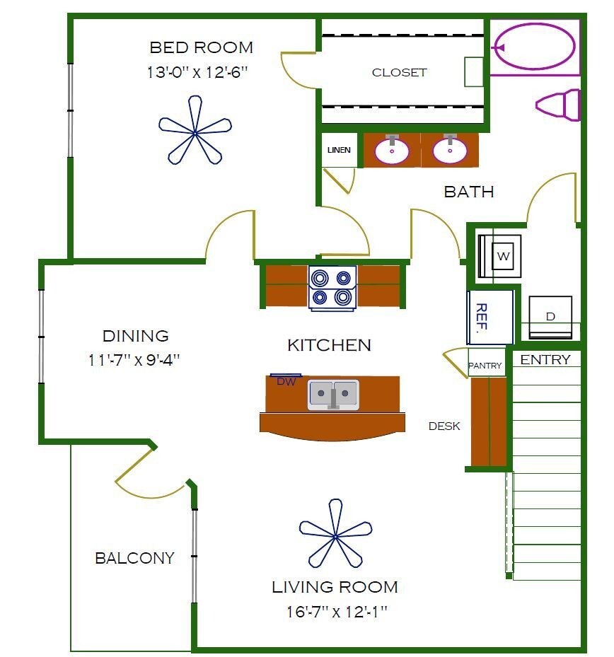 The Stanley - Floorplan 3 Apartment Unit: 0727Apartment Model: The Stanley$1,4091 Bedroom, 1 Bath, 947 sq ftAvailable NowThe Blakely