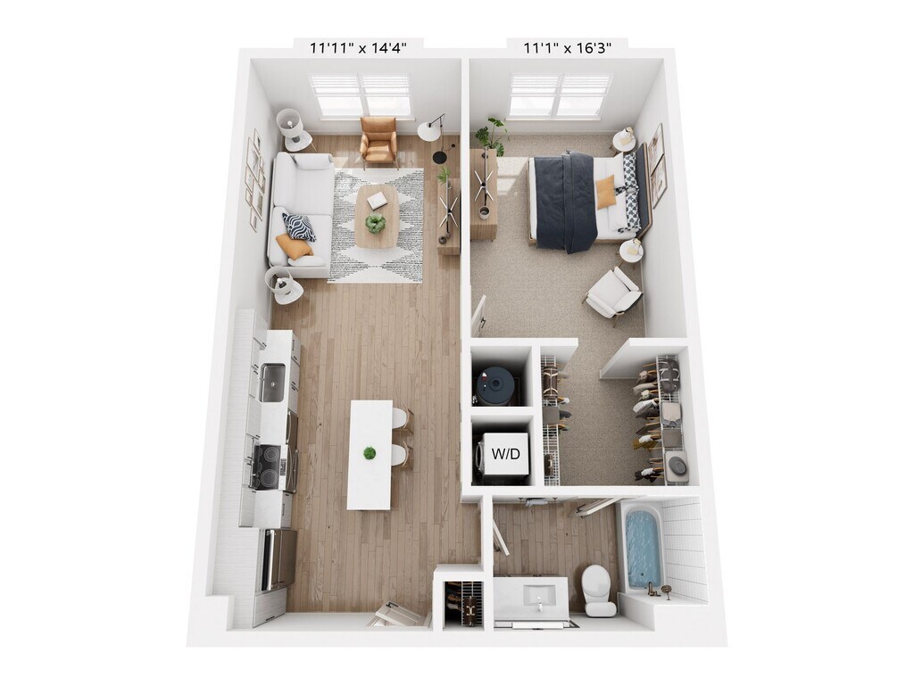 1 Bed, 1 Bath, 690 sq ftModel Gallery
