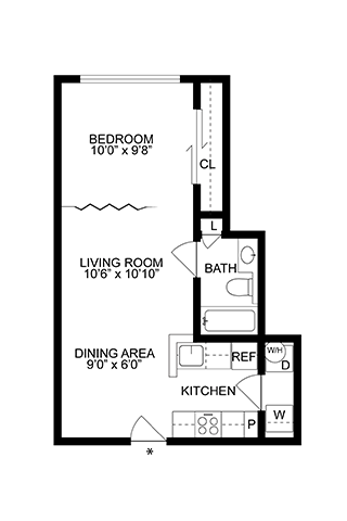 Studio, 1 Bath, 530 sq ftAvailable NowModel Gallery