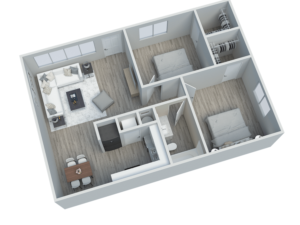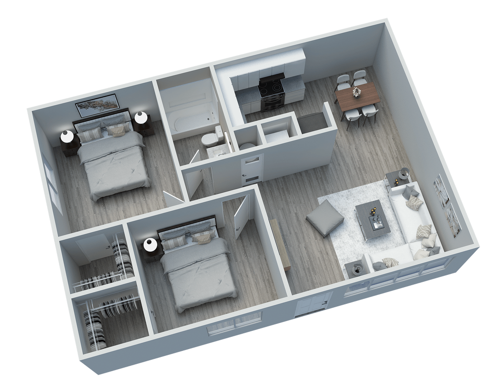 2 Beds, 1 Bath, 830 sq ftAvailable January 9, 2026Model Gallery