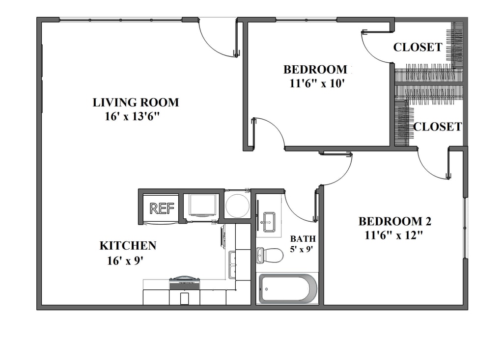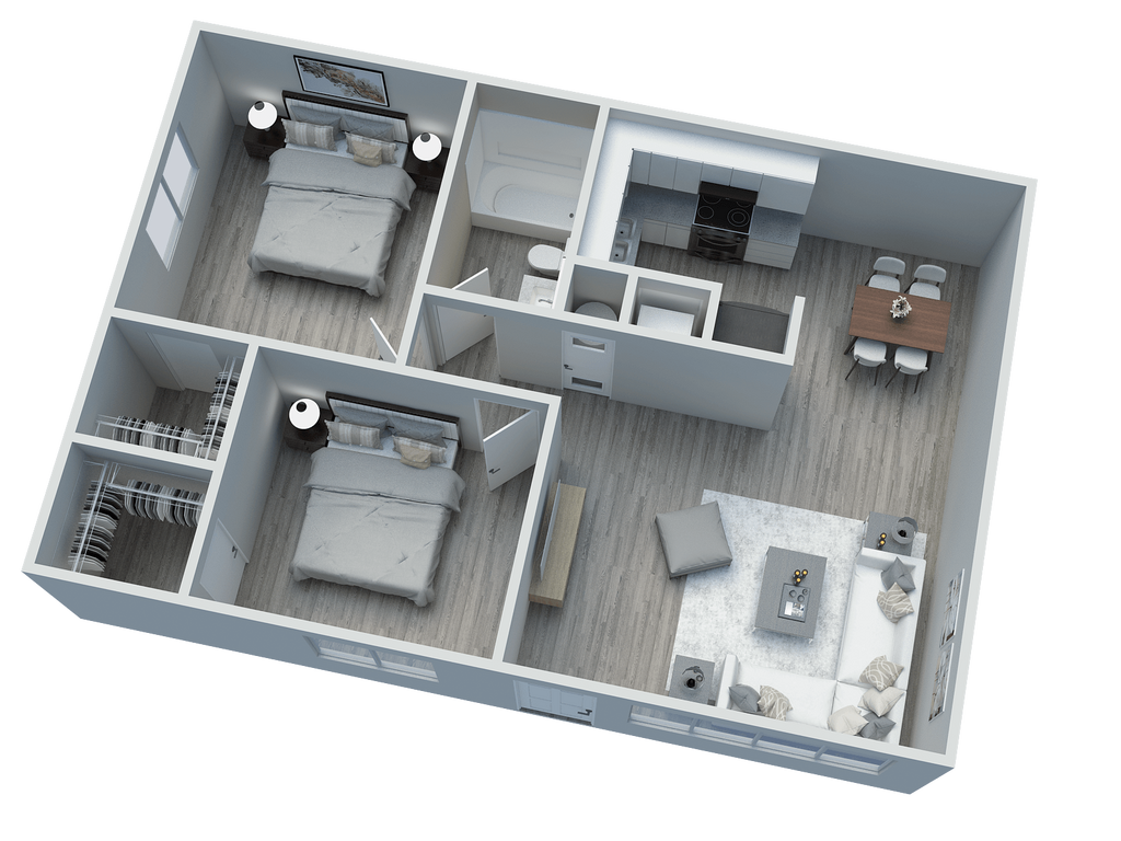 2 Bedroom 1 Bathroom - Floorplan 15 Apartment Unit: 119Apartment Model: 2 Bedroom 1 Bathroom$1,7502 Bedroom, 1 Bath, 830 sq ftAvailable January 9, 2026