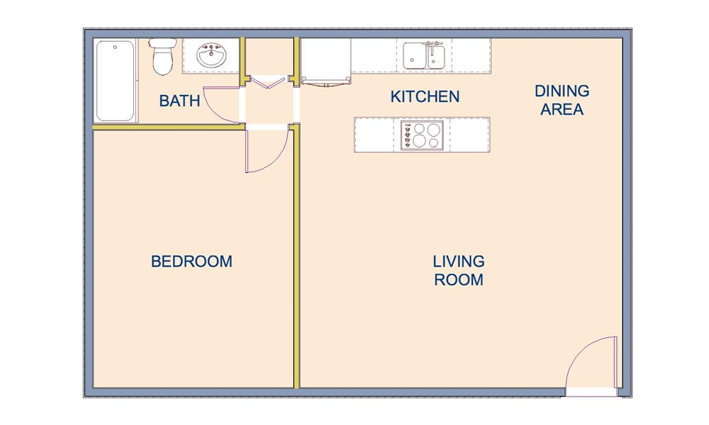1 Bed, 1 bath - Floorplan 1 ![]()
