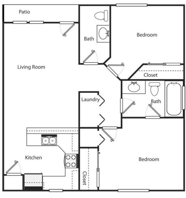 2 Beds, 1.5 baths - Floorplan 1 ![]()