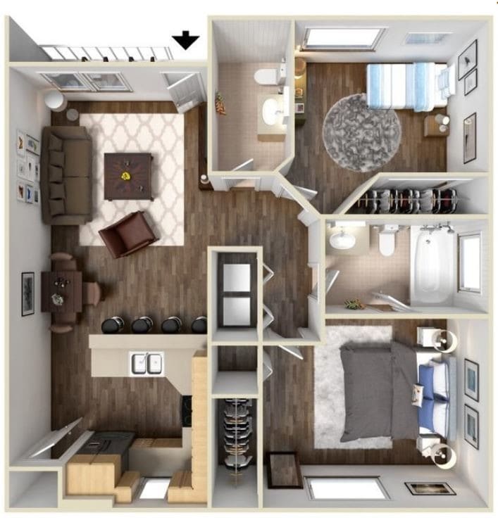 2 Beds, 1.5 Baths, 772 sq ftModel Gallery
