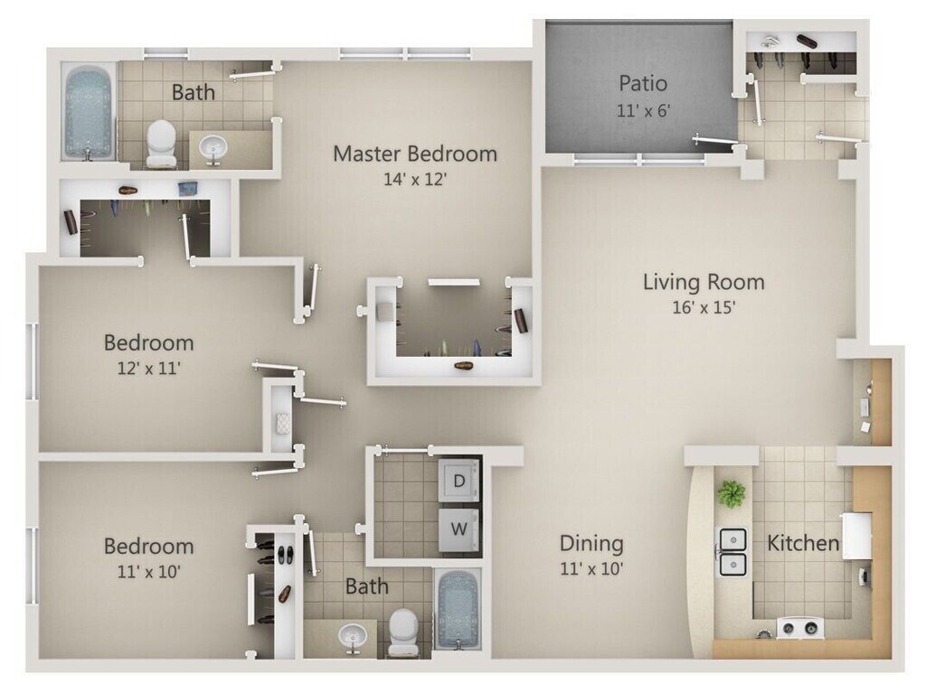 - Spacious 1, 2- & 3-Bedroom Floorplans