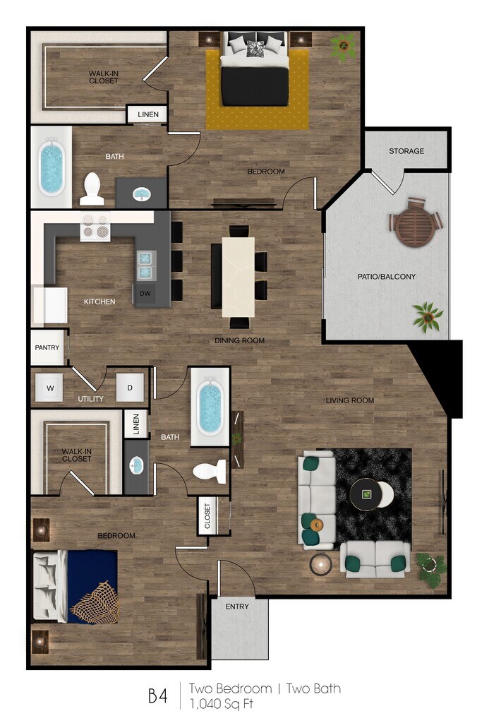 2 Beds, 2 Baths, 1040 sq ftAvailable NowLargest 2 BedroomThis is the largest 2 Bedroom at this PropertyModel Gallery