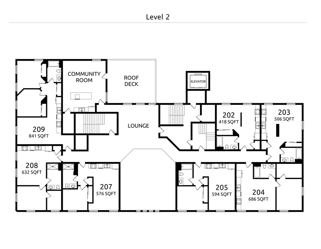 J - Image 6 Apartment Unit: 209Apartment Model: J$1,5052 Bedroom, 1 Bath, 841 sq ftAvailable Now