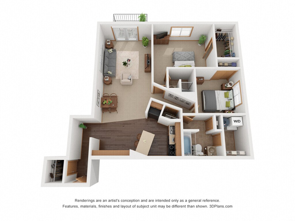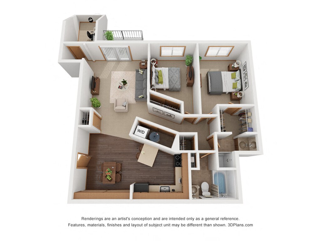 Apartment Model: Two Bed Two Bath DFrom $1,4402 Bedroom, 2 Bath, 1031-1048 sq ftAvailable Now![]()