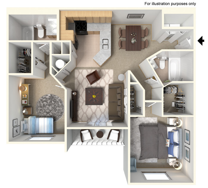 2 Beds, 2 Baths, 1010 sq ftModel Gallery