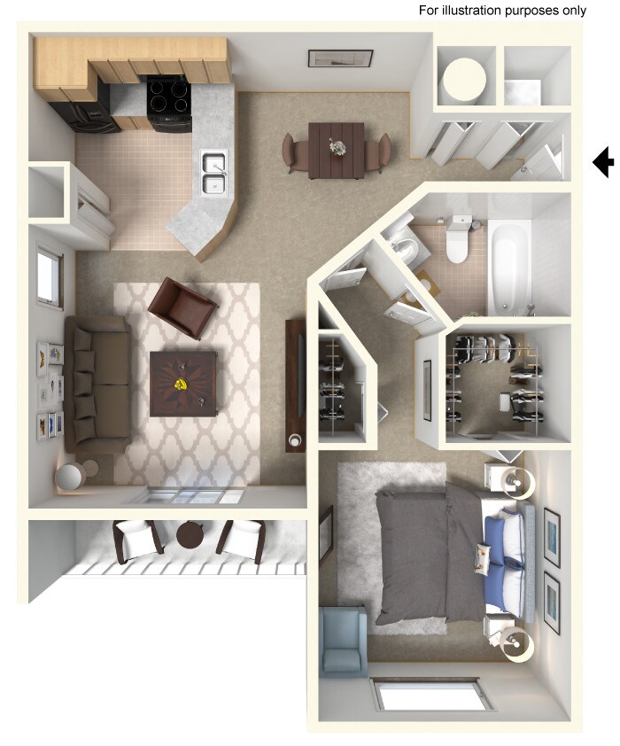 1 Bed, 1 Bath, 741 sq ftModel Gallery