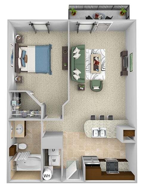 Apartment Model: A3From $1,5761 Bedroom, 1 Bath, 740 sq ftAvailable Now![]()