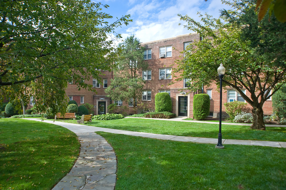 Situated in Narberth, Pennsylvania, Montgomery Court apartments are located in the prestigious Lower Merion school district with easy access to St. Joseph’s University and Philadelphia College of Osteopathic Medicine. Studio, one-, two-, and three-bedroom apartment homes feature hardwood floors, stainless steel appliances, revitalized kitchens with brand new cabinets and flooring, as well as complimentary heat, hot water, cooking gas and gorgeous courtyard views. Residents of our apartments in Narberth, PA can enjoy all-inclusive amenities like beautiful gardens and courtyards and complimentary storage. Underground parking is available with a self service car wash center. Our pet-friendly apartment community is just steps from the train station and the shops of Ardmore, and minutes from a wonderful selection of restaurants, nightlife and recreation. Plus, Center City Philadelphia is just 15 minutes away.