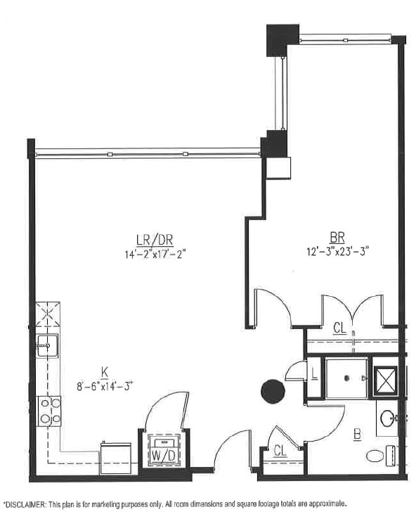 Apartment Model: One Bedroom One BathFrom $2,1001 Bedroom, 1 Bath, 724-857 sq ftAvailable NowFloor plans are artist's rendering. All dimensions are approximate. Actual product and specifications may vary in dimension or detail. Not all features are available in every rental home. Please see a representative for details.