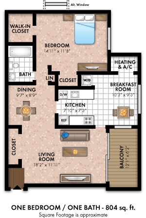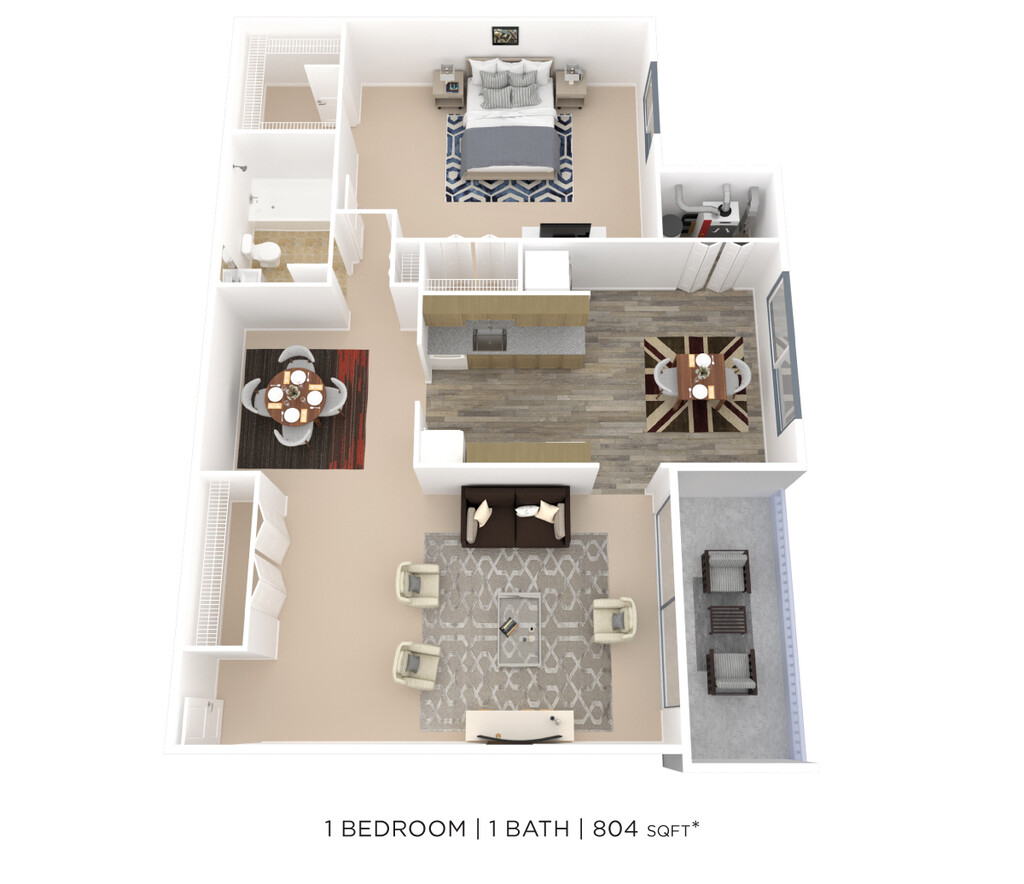Apartment Model: One Bedroom - 804 sqftFrom $1,7161 Bedroom, 1 Bath, 804 sq ftAvailable NowFloorplansPhotos![]()