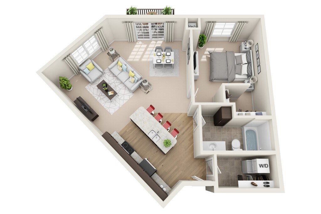 1 Bed, 1 Bath, 761 sq ftPlus FeesAvailable NowModel Gallery