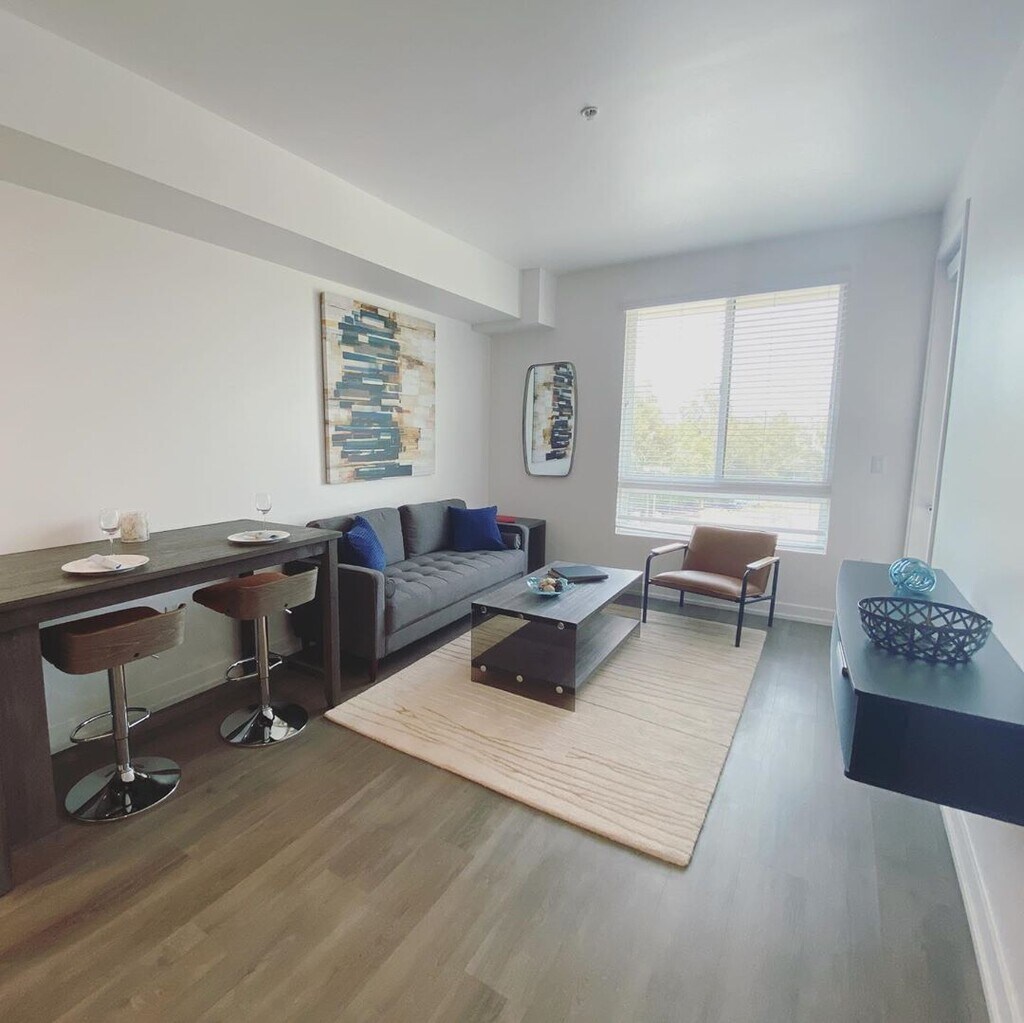 Welcome to Monticello Apartment Homes, located next to the Hyatt and across from the Valencia Town Center, these elegant new apartments provide luxury living in the heart of Valencia. With spacious floorplans ranging from studio to two-bedroom, modern amenities, in an unbeatable location, you'll love living at Monticello! Our development is a contemporary, five-story building that features both apartment homes and convenient ground floor retail. Wake up in an apartment with plenty of natural light, take the day to shop at any of the shopping areas within minutes of your front door, and finish the day with friends in either of our spacious lounge areas located on both the first and second levels with amenities for entertainment or relaxation. We do not require an application fee.