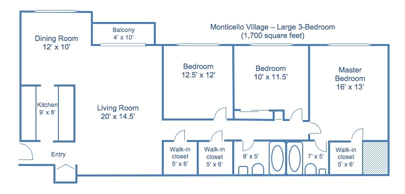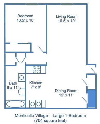 1 Bedroom to 3 Bedroom Apartments at Monticello Village currently range from $1,210 to $1,310