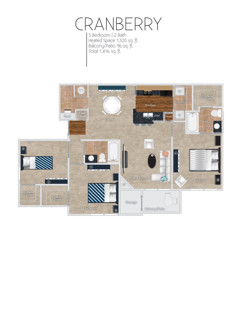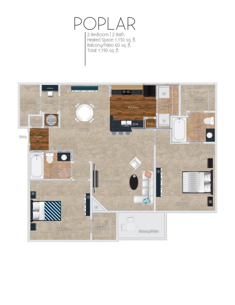 Apartment Model: BeechFrom $1,7892 Bedroom, 2 Bath, 1050 sq ftAvailable Now![]()