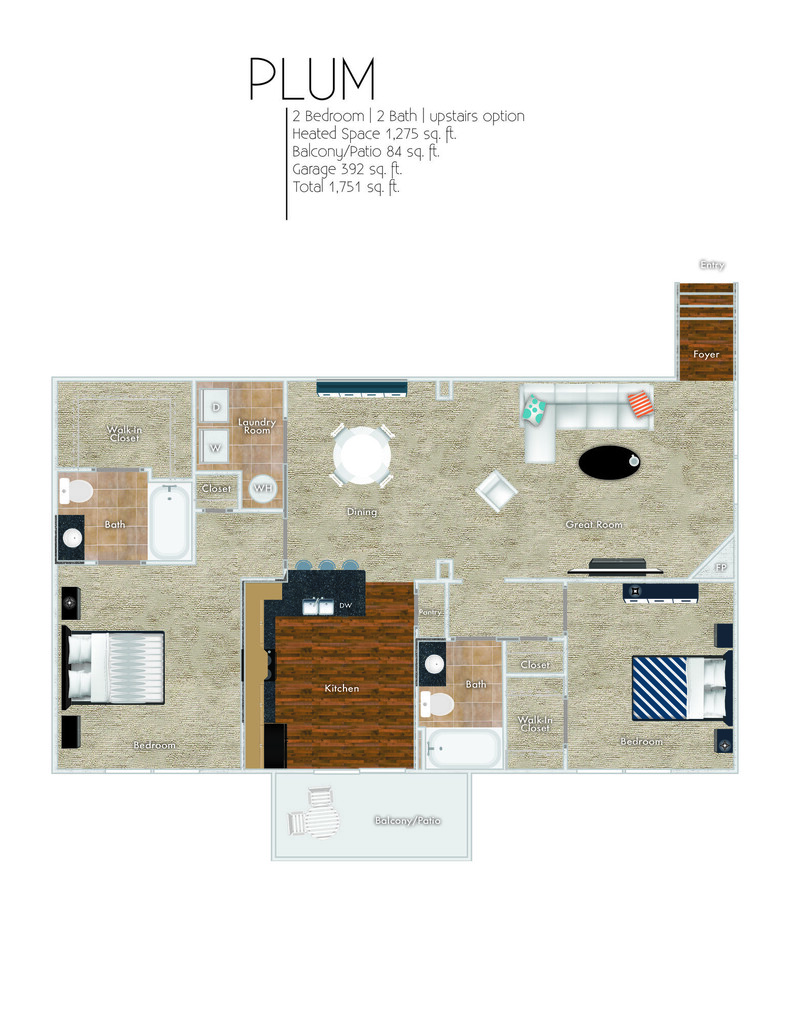 Apartment Model: Plum-GarageFrom $2,4892 Bedroom, 2 Bath, 1210-1275 sq ftAvailable November 8, 2025![]()