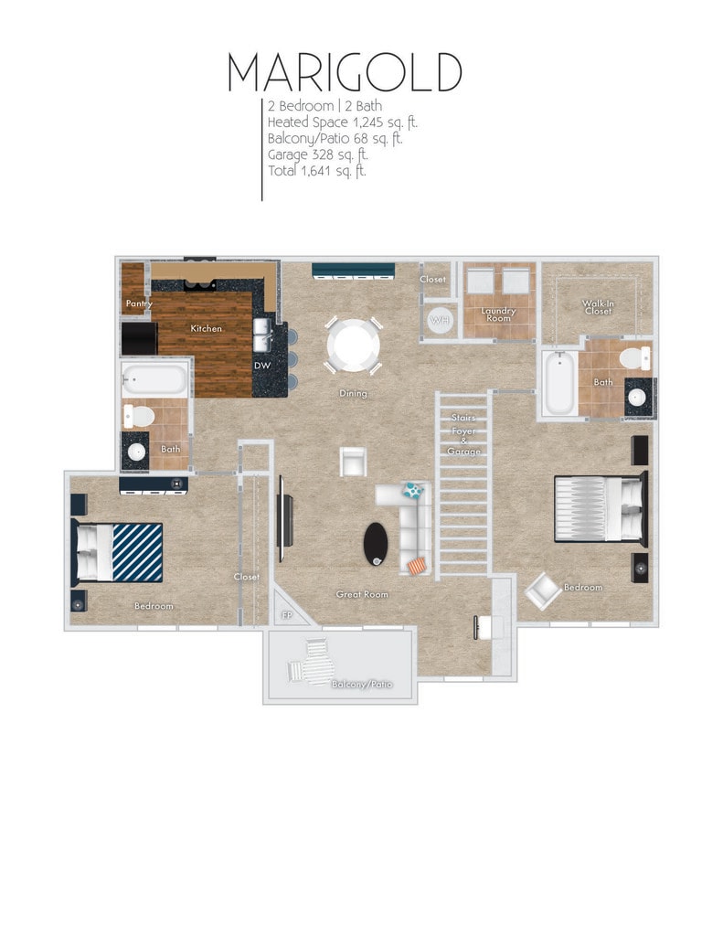Apartment Model: Marigold-Garage$2,4892 Bedroom, 2 Bath, 1245 sq ftAvailable November 8, 2025![]()