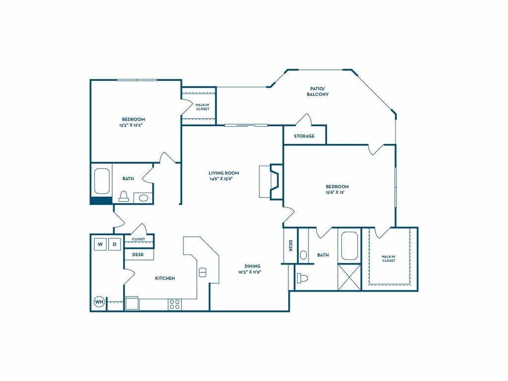 Apartment Model: Malbec 2From $1,6071 Bedroom, 1 Bath, 744 sq ftAvailable March 31, 2026Floor plans are artist's rendering. All dimensions are approximate. Actual product and specifications may vary in dimension or detail. Not all features are available in every rental home. Please see a representative for details.