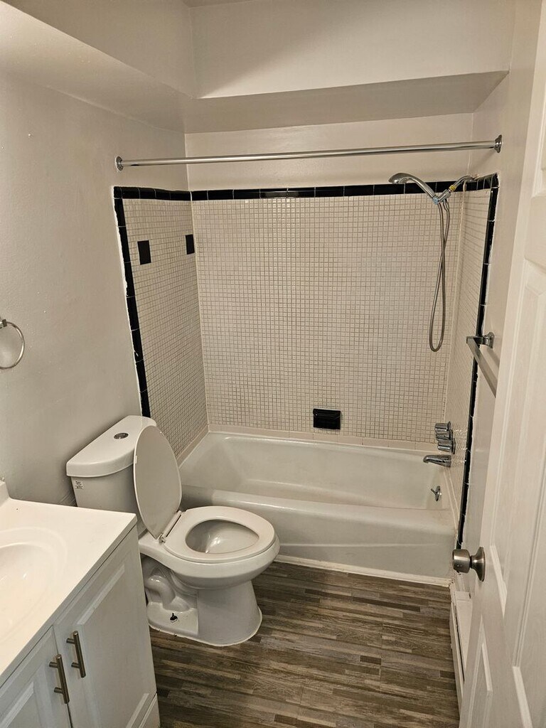 Fully renovated and move-in ready apartment featuring a complete bathroom rebuild with shower stall, brand-new shaker-style kitchen cabinets, new appliances, and modern lighting throughout. Luxury vinyl plank flooring runs throughout the unit, complemented by fresh Solstice Gray walls for a clean, contemporary look.